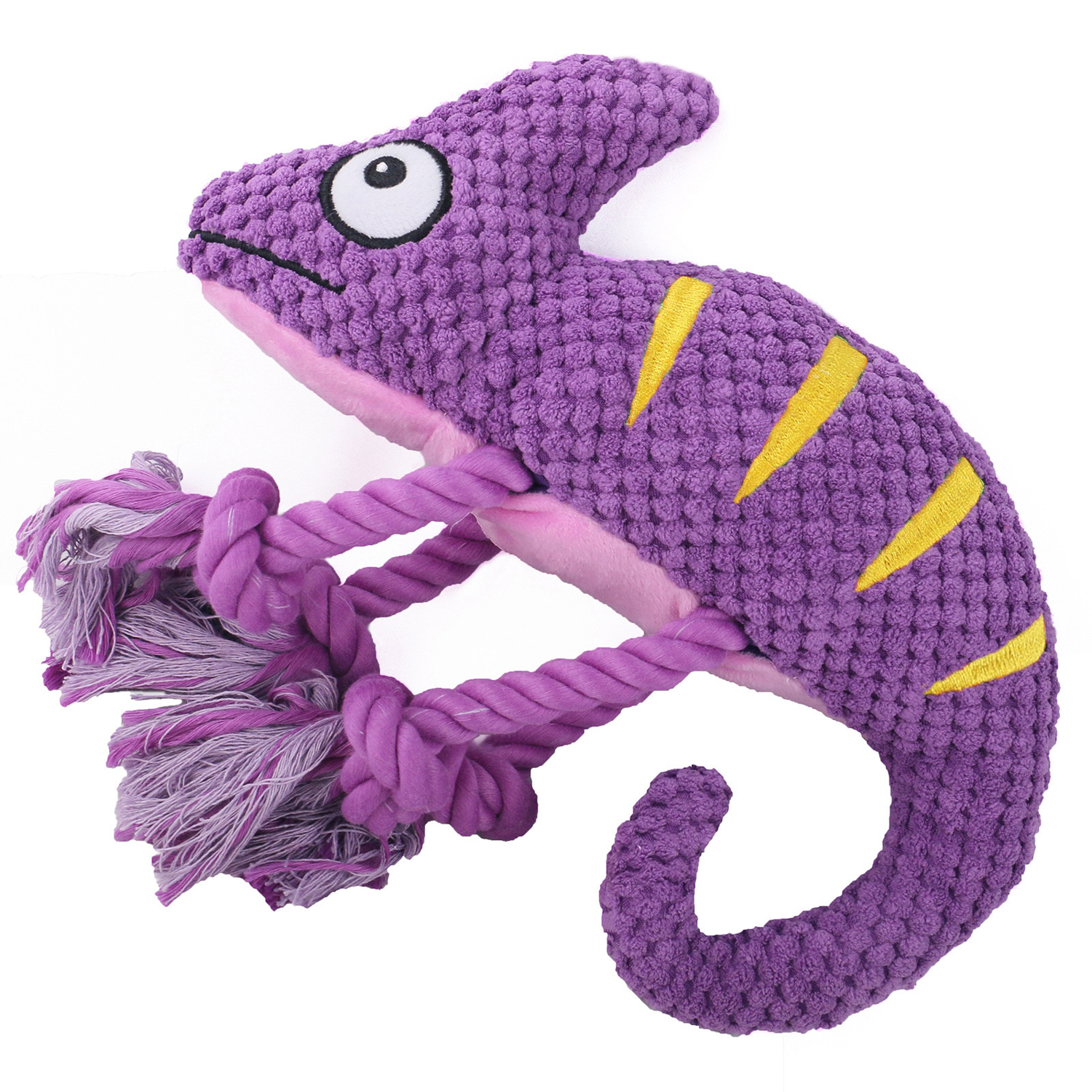 Игрушка Mr.Kranch для собак "Хамелеон" плюшевая с канатиками и пищалкой. Уникальное сочетание высокопрочных гипоаллергенных материалов и стильного дизайна. Для привлечения большего интереса питомца, в переплетение каната можно спрятать любимые лакомства или корм. Игрушка предназначена для совместных игр с хозяином как в помещении, так и на улице. Натуральный хлопковый канат способствует удалению мягкого зубного налета. Размер: 26 см